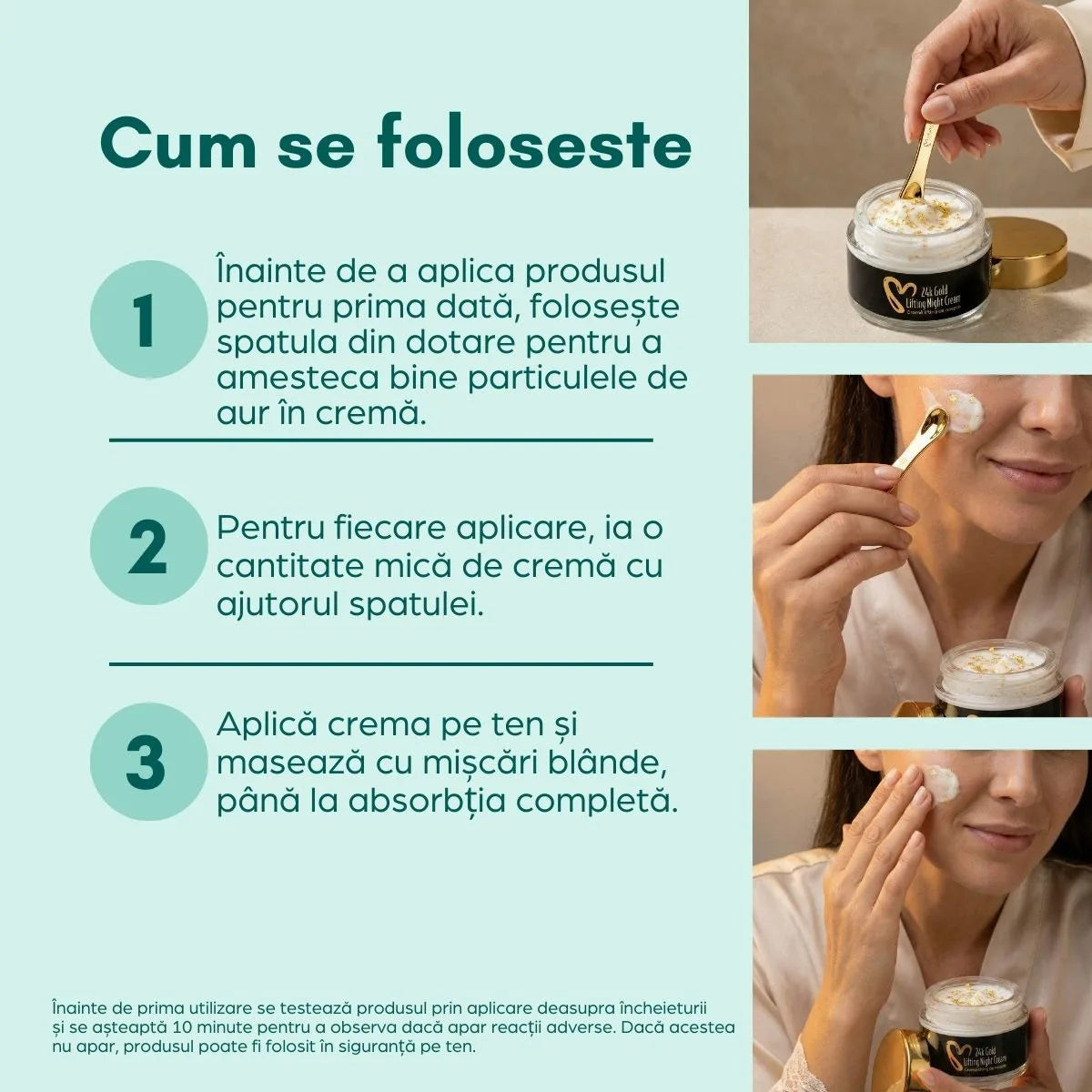 Da, chiar recomandăm acest lucru! Regula de aur în îngrijirea pielii este aplicarea produselor de la cea mai fluidă textură la cea mai densă. Recomandăm să fie folosită împreună cu Serum cu aur 24K și acid hialuronic.