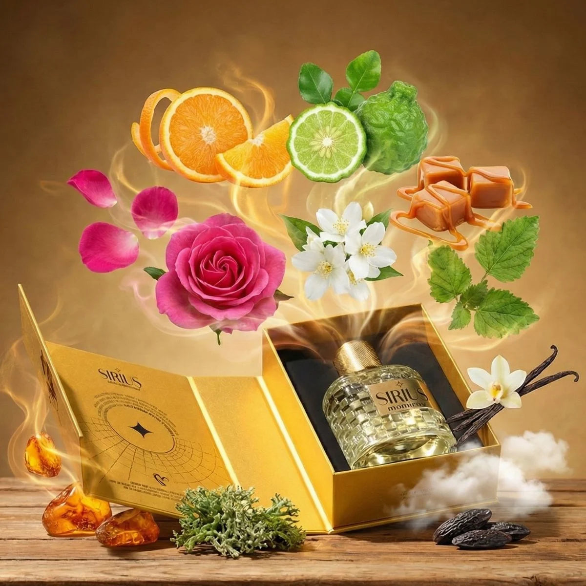 Note de bază: ambra, mușchi verde, vanilie, mosc alb, boabe de tonka