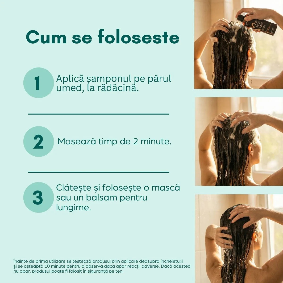 Se aplică pe părul umed, insistând la rădăcină. Este esențial să masați scalpul timp de 2 minute pentru a activa ingredientele, apoi clătiți bine. Masajul ajută substanța activă (Baicapil) să pătrundă în folicul.