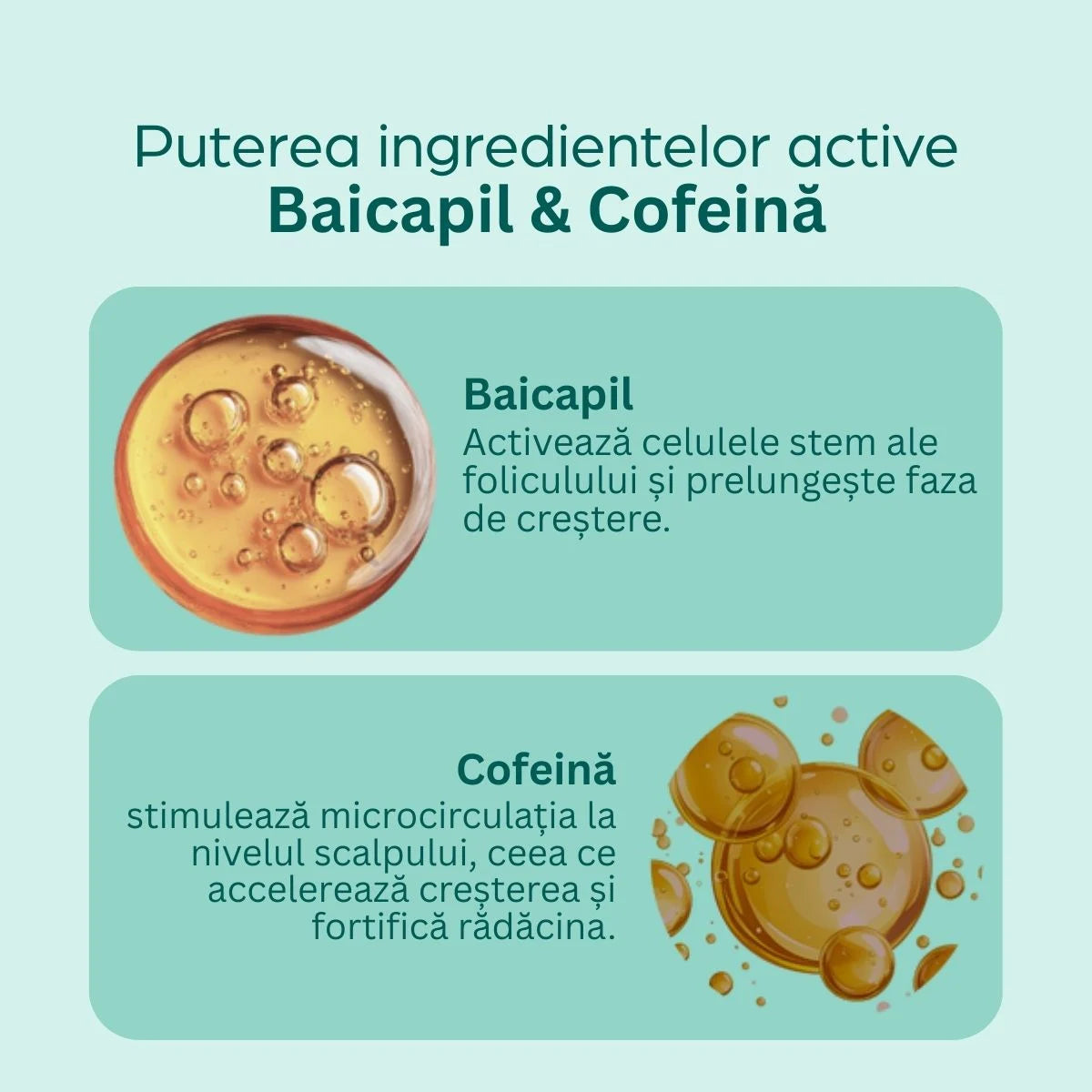 🌱 Baicapil™: Un complex inovator de extracte botanice, dovedit clinic că stimulează creșterea părului, previne căderea excesivă și îmbunătățește densitatea acestuia.